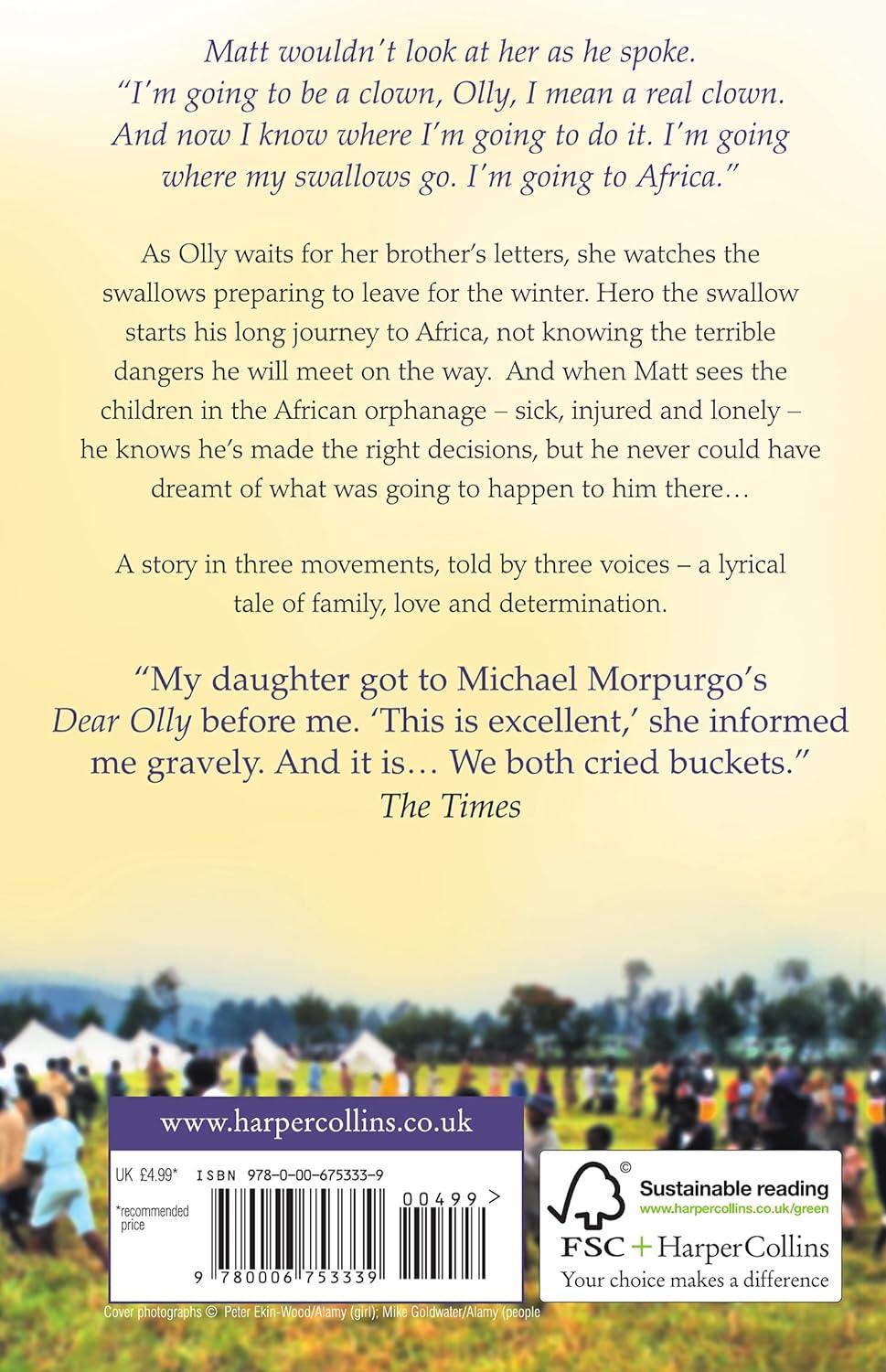 Olly’s brother Matt wants to go and work with children who have been made orphans, through war, in Africa. He wants to be a clown and make them laugh. His mother and sister want him to stay in England and go to university.