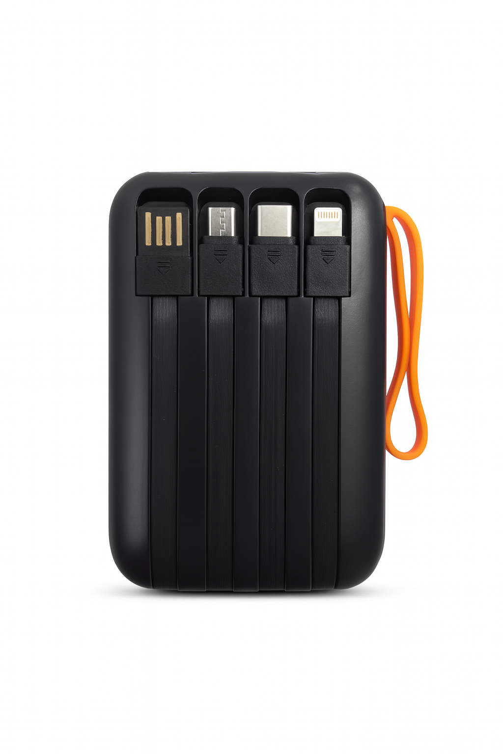 This 10000mAh power bank with cables supports fast charging for multiple devices. Quickly top up your phone or tablet with safe and efficient power delivery. Built-in safety features prevent overheating and overcharging.