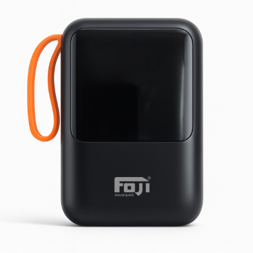 FOJI F1 10000mAh Power Bank – compact, lightweight, and fast-charging. Features built in cables , smart protection, and reliable backup for all your devices on the go