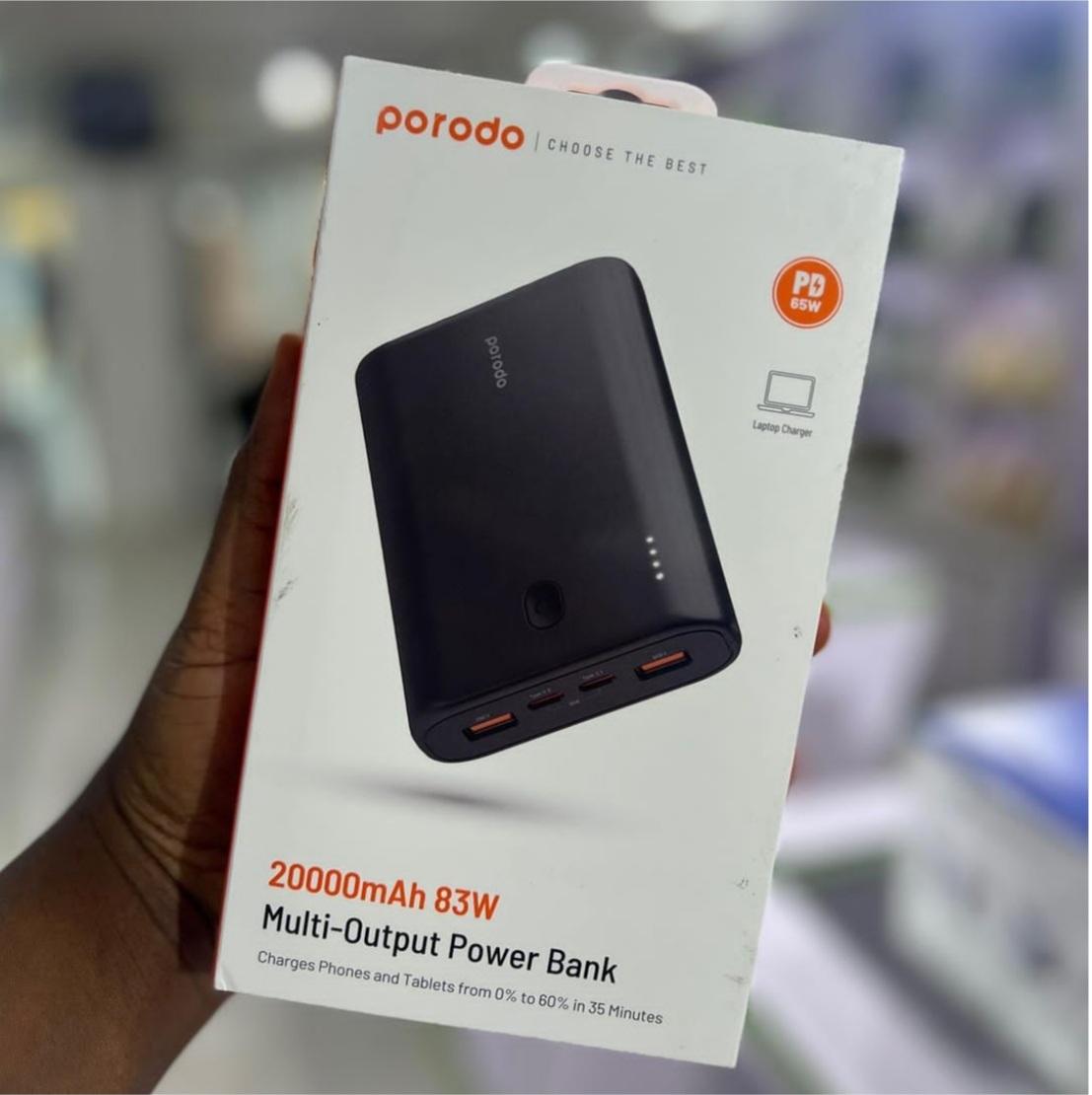 Being prepared for travel includes having a power source. A power bank may help you in a wide range of situations.The Porodo Power Bank 20000mAh is effective and potent enough to supply your devices with the necessary power.Depending on the devices and usages, power equivalent to 20000mAh is sufficient to charge several devices.Multiple ports enable simultaneous charging of various devices. A total of 65W of power can be delivered by the power bank using the super-fast Type-C and 18W USB-A output ports.This product’s sturdy protection systems guard your smartphone against overcharging and overheating. It ensures that your smartphone is charged at the best charging current thanks to the intelligent IC.