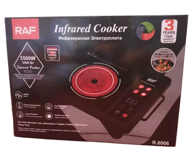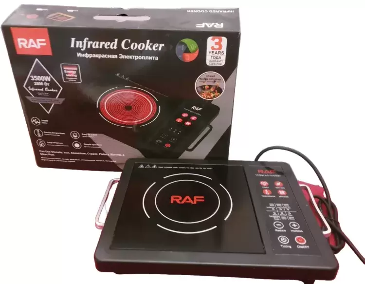 The Raf Infrared Cooker, boasting a powerful 3500 watts of cooking power, is a kitchen appliance designed to revolutionize your cooking experience. This high-powered cooker is all about speed and efficiency, using advanced infrared technology to provide rapid and consistent heating for your culinary creations.Whether you're a seasoned chef or a home cook, this cooker offers versatility in its cooking options. You can use it for grilling, searing, frying, or even slow cooking, making it suitable for a wide range of dishes and cooking techniques.